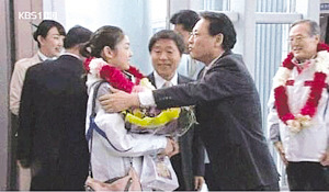 據(jù)悉,本月2日,溫哥華冬奧會韓國代表團回國之時,韓國文化部長柳仁存親自到仁川機場迎接。在此期間,KBS一直負責整個過程的錄制過程,柳仁存部長被拍到在給金妍兒佩戴花環(huán)時,曾試圖擁抱金妍兒,但金妍兒顯然對這一舉動比較介意,有意地向后退縮,但柳部長仍強行兩手抱住金妍兒,表情更是有些“猥瑣”。