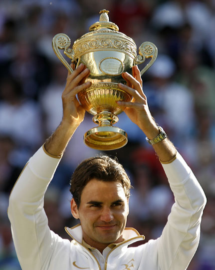 中新網(wǎng)7月6日電 今天凌晨,2009年溫布爾登網(wǎng)球公開賽的壓軸大戲——男單冠軍爭(zhēng)奪戰(zhàn)終于落幕,天王費(fèi)德勒與羅迪克苦戰(zhàn)四個(gè)多小時(shí),最終瑞士人以3比2險(xiǎn)勝,五局比分為5比7、7比6、7比6、3比6、16比14,同時(shí)費(fèi)德勒也以15座大滿貫單打冠軍的紀(jì)錄超越桑普拉斯,成為網(wǎng)球史上最偉大的一位冠軍。
