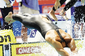 意大利時間昨天下午進(jìn)行的男子4×100米自由泳接力預(yù)賽中,伯恩斯代表美國隊參加了第三棒比賽。當(dāng)他出發(fā)起跳時,泳衣臀部裂開一條大口子,但敬業(yè)的伯恩斯仍舊堅持游完全程,上岸后尷尬的美國小伙子迅速用一條白色大毛巾遮住了走光的臀部。最終美國代表隊以3分11秒64、預(yù)賽第四名成績晉級決賽。