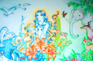 排球美女趙蕊蕊扣球厲害,還畫得一手好畫。在一次北京海洋館舉辦的環(huán)保作品比賽中,她的一幅作品獲得二等獎。趙蕊蕊在博客里公布了這幅作品,她解釋說:“我想表達的是地球母親手捧地球,左邊是海洋世界,右邊是陸地世界,而她的頭頂是一片天空,因為有了這一切才構(gòu)成和諧統(tǒng)一的世界!