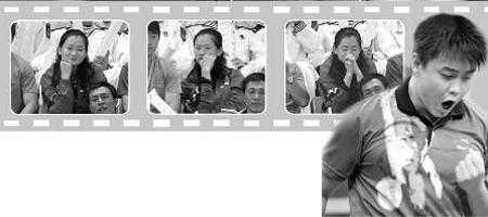 開賽后,王皓很快2:0領(lǐng)先,彭陸洋看得興高采烈。沒想到,馬琳迅速調(diào)整了狀態(tài),連追兩局。第五局,王皓8:10落后,彭陸洋嚇得閉上了眼睛,不敢看比賽。過了好一會兒,她才睜開眼睛,當?shù)弥杏演斍蚝,顯得非常難過。