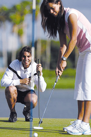 早在之前的匯豐冠軍賽上,納達(dá)爾就曾經(jīng)為老虎伍茲捧場,而他自己也是位“敬業(yè)的高爾夫粉絲”,同時(shí)也是老虎伍茲的崇拜者。網(wǎng)壇美女伊萬諾維奇更是不用說,最近剛剛和高爾夫萬人迷斯科特爆出緋聞,和斯科特在海灘的清涼照片更是被多家媒體刊登,F(xiàn)在伊萬諾維奇為了和斯科特有更多的話題也拿起了球桿開始學(xué)習(xí)高爾夫。