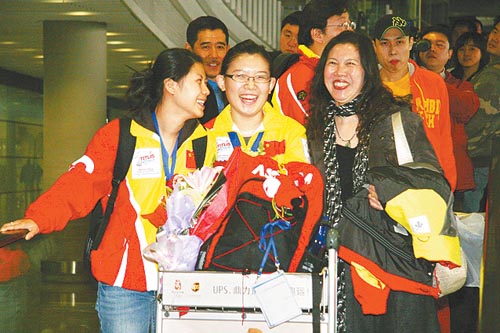 中國女子冰壺隊昨天在韓國奪得世錦賽冠軍的消息在國內(nèi)引起了轟動。今天下午,當(dāng)她們從韓國飛抵北京首都機(jī)場后,數(shù)十名守候的記者把她們團(tuán)團(tuán)圍住,一向很少有人關(guān)注的中國冰壺姑娘面對大堆相機(jī)和話筒,感到受寵若驚,在賽場上以沉著冷靜著稱的隊長王冰玉,在這一刻也激動得說不出話來。
