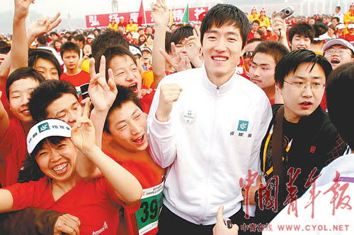 劉翔作為主辦方的代言人出現(xiàn)在主席臺(tái)上,原本他還要向北京智泉打工子弟學(xué)校的參賽學(xué)生贈(zèng)送自己簽了名的長(zhǎng)跑節(jié)T恤衫,但因?yàn)闊崆榈挠^眾幾乎引起擁擠而被改在賽后進(jìn)行,就連事先約好的采訪也被迫取消。即便如此,“劉翔”、“劉翔”的喊聲還是持續(xù)了很長(zhǎng)時(shí)間。