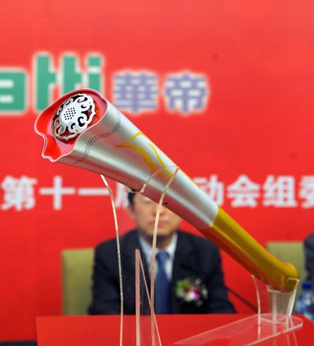 據(jù)介紹,火炬的設計緊緊圍繞十一運會“和諧中國,全民全運”的賽事主題,火炬外形借鑒中國傳統(tǒng)吉祥物件如意加以提煉,取“如意和諧,吉祥美好”的寓意。