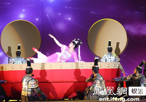 中新網(wǎng)7月2日電 7月1日,由劉曉慶主演的大型史詩實景舞臺劇《阿房宮賦》在西安進行了首場演出,80分鐘的歌舞表演無論從燈光布景以及音效都給了觀眾一場視覺與聽覺的饕餮盛宴。劉曉慶的傾力演出以及身著的大跨度服裝也成為當晚最大的亮點。