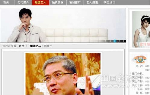劉謙、梁朝偉、張曼玉、郎咸平這幾個名字你會想到什么?中國經(jīng)濟網(wǎng)記者今日在瀏覽某演藝經(jīng)紀網(wǎng)站發(fā)現(xiàn),平日里在媒體上以觀點獨到著稱、曾炮轟德隆系、痛斥國有企業(yè)MBO改革失敗、力推企業(yè)經(jīng)理人要講信托責任的香港中文大學教授郎咸平竟然出現(xiàn)在其中,與梁朝偉、劉謙、SHE組合等當紅一樣也出現(xiàn)在“加盟藝人”之中。郎咸平教授曾在不同場合號稱自己要“上春晚”、“頂替趙本山”。難道真是邁出了這一步?
