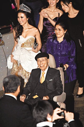 中新網(wǎng)8月2日電 據(jù)香港“文匯報(bào)”消息,“香港小姐選舉”是TVB一年一度重頭節(jié)目,老板六叔邵逸夫每年都亮相,昨晚六點(diǎn)多邵逸夫在夫人方逸華陪同下出現(xiàn)紅館,邵逸夫頭戴格子帽,乘車到場(chǎng),神采奕奕,下車時(shí)還帶笑揮手,然后與去年港姐冠軍劉倩婷、亞軍李姿敏、季軍熊穎詩(shī)合照,之后邵逸夫由一名護(hù)士推著,在6名保安護(hù)送下入場(chǎng)。