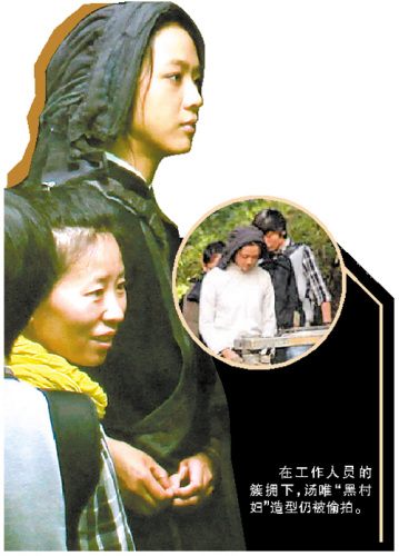 在云南騰沖低調拍攝的《武俠》日前遭到偷拍,女主角湯唯“黑村婦”造型被曝光。