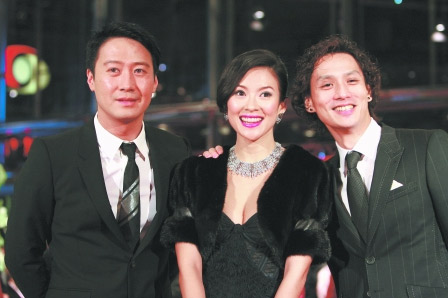 當?shù)貢r間2月10日晚(北京時間2月11日凌晨),本屆柏林電影節(jié)惟一的參賽華語片《梅蘭芳》在柏林電影宮舉行了盛大的歐洲首映儀式。當天柏林的天氣并不是很好,《梅蘭芳》的紅毯儀式還趕上了下雨,但是到場的華人華僑及外國友人還是將最熱烈的歡呼聲送給了這部“神秘而美麗”的中國電影。片中兩位女主角章子怡和陳紅無疑是當晚紅毯上最耀眼的明星。陳紅身穿藕青色的低胸晚裝,上鑲金色刺繡,非常具有中國特色,而章子怡則延續(xù)素雅路線,一身藍黑低胸晚裝搭配黑色皮草披肩,在脖頸千萬鉆飾的映襯下,顯得分外雍容華貴。
