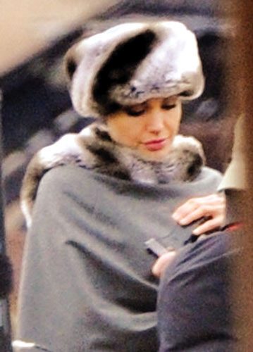 昨日,因拍攝新片《特工鹽》而暈倒的安吉麗娜·朱莉重返拍攝現(xiàn)場。朱莉看上去相當(dāng)虛弱,上身裹在一件皮草披風(fēng)之中,頭戴一頂帽子。