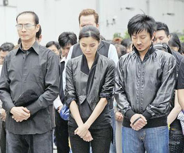 中新網(wǎng)5月20日電 香港無(wú)線全體演職員昨天中午于將軍澳電視城發(fā)起默哀活動(dòng),逾百位藝員及數(shù)百位職員合共500多人,齊集電視城停車(chē)場(chǎng),在無(wú)線總經(jīng)理陳志云帶領(lǐng)下,于14時(shí)28分為四川汶川大地震遇難的同胞默哀3分鐘。默哀開(kāi)始不久即下起毛毛細(xì)雨,多位藝人包括關(guān)菊英、苗僑偉、蒙嘉慧、陳法拉等于默哀時(shí)不禁落淚,場(chǎng)面莊嚴(yán)而凄涼。