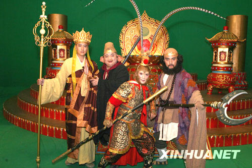 12月30日,唐僧師徒的扮演者亮相。新版電視劇《西游記》目前正在上海車墩影視基地緊張拍攝,將于2009年2月初攝制完成,暑期上映。新華社發(fā) 朱良城 攝