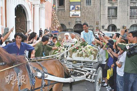 當(dāng)神父對(duì)張衛(wèi)健說可以親太太時(shí),一對(duì)新人儼如接吻魚親不停,足足親足一分鐘。兩人簽署結(jié)婚證書后,大家擁上爭相和一對(duì)新人合照。約于3時(shí)30分半,一對(duì)新人乘坐馬車離開教堂,張衛(wèi)健情不自禁再親吻張茜,聞風(fēng)而至的影迷均涌入教堂,和明星合照,再加上過百來自內(nèi)地、香港和菲律賓的傳媒,將教堂迫得水泄不通,好不混亂。