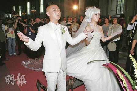 一對新人在酒店筵開18席,現(xiàn)場又大放煙花,歷時5分鐘,在浪漫的環(huán)境下,一對新人忍不住擁抱四目交投,兩度熱吻。結(jié)婚蛋糕共3層,外層的糖衣由粉紅玫瑰和100粒水晶點綴,花了兩日時間制成,價值600元美金,整個婚禮豪花約500萬港元。酒會前一對新人先接受訪問,新郎張衛(wèi)健坦言整個婚禮都十分緊張,還以為自己未讀完誓辭,就跟神父講還未讀完,但神父提他已讀完,余下是新娘子讀,兼且他又擺烏龍幫太太戴錯戒指在右手。張衛(wèi)健說:“以前不信新娘結(jié)婚當(dāng)天是最漂亮的,原來是真的!彼Q婚后他首要學(xué)習(xí)如何白頭到老,他更羨慕一對老人家手拖手行街,希望將來都可以做到。
