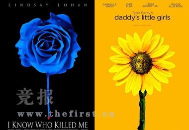 簡(jiǎn)單的畫面,開得正旺的鮮花上若隱若現(xiàn)著一張臉,干凈利落。不過(guò)不要以為換了顏色,我們就看不出了。當(dāng)然,黑底藍(lán)花渲染了《我知道誰(shuí)殺了我》的恐怖氣氛,向日葵讓《爸爸的女兒》溫暖的主題更深入人心。