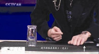 這個魔術(shù),實際上董卿是個托,因為魔術(shù)不涉及職業(yè)道德的問題,只要給觀眾一個驚喜就可以了,董卿在兩個硬幣上簽名,當(dāng)然字體和樣式要相近,私下里簽好的早已經(jīng)給劉謙了。這時,硬幣掉在了桌面上,細(xì)心的觀眾可以明顯的看到硬幣的反光。