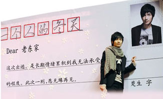 陳楚生再次在自己的博客上發(fā)表文章,希望媒體不要打擾自己的家人,而發(fā)生在自己身上的解約事件,他愿意坦然地去面對應(yīng)該承擔(dān)的責(zé)任。而他所說“責(zé)任”的另一方——東家天娛公司卻罕見地在陳楚生公開表示沖喜的那天(1月15日)起保持著不做任何回應(yīng)的低調(diào)態(tài)度。(詳情請見本報(bào)1月21日報(bào)道)。陳楚生是從天娛主辦的“快男”舞臺(tái)上迅速鑄就的傳奇,但同時(shí)也遭遇到整個(gè)選秀體制客觀存在的缺陷帶來的窘迫。日前,天娛總經(jīng)理龍丹妮接受本報(bào)記者獨(dú)家專訪,坦率地回應(yīng)了外界對天娛的種種猜測與斷定,而作為新官的她將燒起三把火:開拍新版《流星花園》、春夏期間舉辦超女,而最終要做的就是“引火燒身”,從體制上改革天娛。