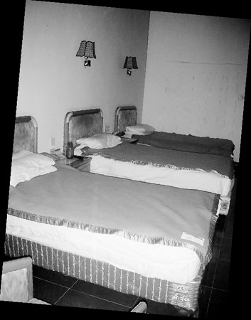 到了貴賓樓,大廳內(nèi)燈火通明,四個(gè)訓(xùn)練有素的保安把守大門。記者走進(jìn)用餐區(qū),遇見了服務(wù)員小劉。她在貴賓樓干了四五年,看到明星對(duì)她來說是家常便飯,“前年拍《功夫之王》的時(shí)候,成龍、李連杰和劉亦菲都住在我們這里,我都見過。成龍帶了好幾個(gè)保鏢,還有一車的專用健身器材。”