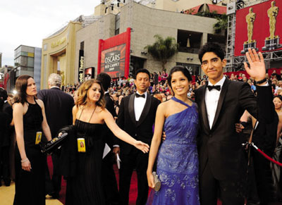 獲獎(jiǎng)之后,《貧民窟的百萬富翁》的男女主角、18歲的戴夫·帕特爾和24歲的芙蕾達(dá)·平托平步青云,成為好萊塢的搶手貨。不僅片約不斷,他們還頻繁登上各類時(shí)尚雜志,甚至NBA全明星賽等各大典禮都給他們發(fā)出了邀請(qǐng)函,成了現(xiàn)實(shí)中名副其實(shí)的“百萬富翁”。