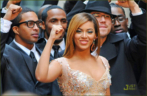 27歲的性感天后碧昂斯3月8日在紐約街頭身穿閃亮低胸性感禮服亮相,為自己的世界巡回演唱會(huì)拍攝特別版MTV,從照片中我們可以看出碧昂斯身后跟著無數(shù)西裝革履的男士們,我們很期待看到這個(gè)MV的精彩內(nèi)容,下面我們先看看照片吧。