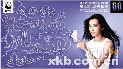 內(nèi)地女星李冰冰近兩年除了成為國(guó)際一線品牌青睞的對(duì)象外,由于其形象健康,也受到環(huán)保組織的注意。日前,由世界自然基金會(huì)(簡(jiǎn)稱wwf)發(fā)起的 “EarthHour”活動(dòng),就看中了李冰冰的國(guó)際號(hào)召力,將她從《風(fēng)聲》的劇組里“借”了出來(lái),于3月28日在北京鳥巢發(fā)起“熄燈一小時(shí)”活動(dòng)。該活動(dòng)一向具有廣泛的國(guó)際影響力,在澳大利亞更請(qǐng)到了好萊塢巨星妮可·基德曼擔(dān)任推廣大使。據(jù)悉在活動(dòng)當(dāng)晚,妮可·基德曼和李冰冰將分別出現(xiàn)在悉尼歌劇院和鳥巢中,并有機(jī)會(huì)用遠(yuǎn)程通話的方式響應(yīng)此次活動(dòng)。