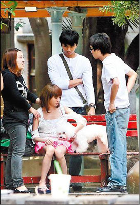 Jolin在片場(chǎng)認(rèn)真演出,她的狗兒子“屋虎”也有專人照顧,坐在木椅上還有人為牠扇風(fēng)解熱,Jolin一有空也不忘關(guān)心狗兒子,坐在木椅上逗弄愛(ài)犬。