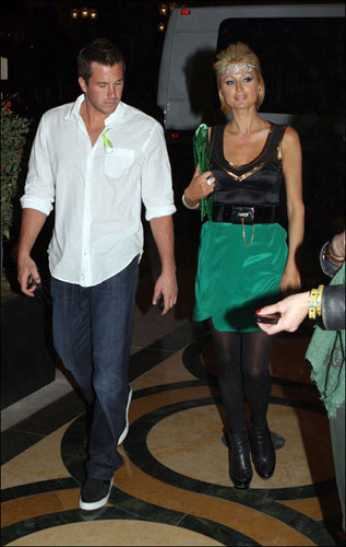 希爾頓戴鉆石頭飾 穿綠色短裙酷似小精靈(組圖)(3)——中新網(wǎng)