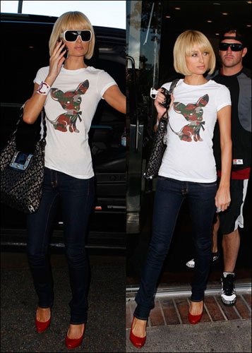 希爾頓小狗圖案T恤清新亮相 紅高跟鞋搶眼(圖)(3)——中新網(wǎng)