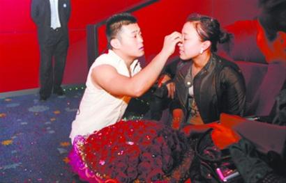 等情緒穩(wěn)定下來,記者獨家專訪了毛毛。毛毛仔細回想了一下這幾天男友的表現(xiàn),說她最近發(fā)現(xiàn)王金龍行為有點怪,接電話的時候總是偷偷摸摸的,她一問是誰,王金龍就隨便找個理由給搪塞過去!敖裉焖艺f要去補拍婚紗照,我就覺得有點兒不對勁,婚紗照早就弄好了啊,為什么還拍呢?也不知道他要干什么。 ”盡管這樣,一向?qū)δ杏蜒月犛嫃牡拿是相信了男友,跟著他出了家門。毛毛說,就在大屏幕上出現(xiàn)王金龍的時候,她一下子就蒙了,怎么都不敢相信眼前的一切!拔乙郧爸辉陔娪半娨晞±锟吹竭^求婚的場景,我沒想到自己也能經(jīng)歷一次這么浪漫的過程。剛才我腦子里一直在想我們倆人在一起的場景,一幕一幕的,真的很感動。 ”