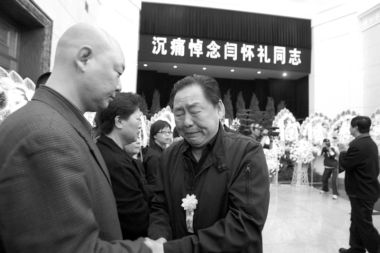 上午9時40分,遲重瑞、六小齡童和馬德華攜花圈來到現(xiàn)場。聚集在廣場上的影迷和記者立即將3人團(tuán)團(tuán)圍住!八研蕹山鹕砹_漢,并將永遠(yuǎn)留在喜愛他的觀眾心里。”六小齡童激動地說。六小齡童表示,閆懷禮在天堂和他們心同在,他們是生死之交。同時他和馬德華也透露,電視劇《吳承恩與西游記》將在今年暑期播出,這也是閆懷禮生前最關(guān)注的一件事。此外,《西游記》中的幾個好兄弟也一直在策劃《西游記》主題公園和電影《大鬧天宮》,他們將盡快落實(shí),以告慰閆懷禮的在天之靈。