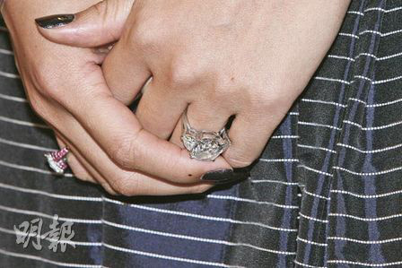 據(jù)香港《明報(bào)》報(bào)道,章子怡專程赴港參加代言活動,她穿著價值7000元(港幣,下同)的吊帶衫裙,左手無名指繼續(xù)戴上她最愛的10克拉巨型鉆戒,右手尾指亦戴上另一款巨型鉆戒,再配以鉆石手鏈大曬幸福貴氣。貴為國際影星的她,全程戴上太陽眼鏡,由她現(xiàn)身到訪問結(jié)束離開,只有10分鐘時間,而她身邊除經(jīng)理人、助手外,還有10名保安護(hù)駕,盡顯大明星風(fēng)范;顒佑谥形缗e行適值午飯時間,吸引好多市民駐足觀看。