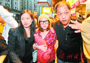 衛(wèi)詩在大批記者簇擁下,須由助手開路,慢慢步回安富樓,她歸心似箭,到大廈門前心情緊張,只差幾步便返抵舊居,突然顯得全身乏力腳軟,身體失重心向后摔倒,“哎呀”一聲坐倒地上,相當狼狽。其助手立即扶起衛(wèi)詩,直入安富樓家中。