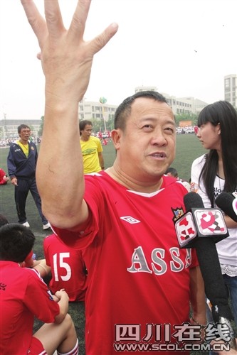 昨日下午,位于地震重災(zāi)區(qū)的什邡中學(xué)體育場(chǎng)熱鬧非凡。一場(chǎng)由譚詠麟率領(lǐng)的香港明星足球隊(duì),與孫楠率領(lǐng)的夢(mèng)舟明星足球隊(duì)之間的足球賽正式開鑼。曾志偉、成奎安、羅家英、陳百祥、何家勁、洪金寶之子洪天明以及白巖松、景崗山,羽泉、文章、吳京、黃格選、陶偉等30多個(gè)影視歌明星輪番上陣,爭(zhēng)搶激烈。譚詠麟、曾志偉帶頭當(dāng)老頑童玩得盡興,明星們還在比賽間隙穿插文藝表演,讓觀眾無比激動(dòng)。