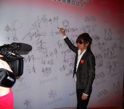 中新網(wǎng)5月8日電 5月7日,備受矚目的新人歌手陳爍軒和歌手李琛一起出席了由世紀遠洋主辦、ADOBE和中科希望協(xié)辦的紀念汶川地震一周年慈善活動;顒又校悹q軒和李琛作為慈善拍賣大使為拍賣品簽名,并呼吁大家熱心慈善,關愛生命。