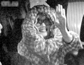 記者當晚途經(jīng)灣仔春園街明星食肆“佳文魚生”,當時餐廳的卷簾門已經(jīng)拉下一半,突然一輛七人車在餐廳門口停下,只見穿著灰色衣服的何韻詩下車閃身進入店內(nèi),隨后還有何爸爸及何媽媽。當記者試圖尋找何韻詩一家的下落時,立即有工作人員阻止記者拍照,并將卷簾門拉低。大約3個小時后,一名男子率先離開餐廳,緊隨其后的是一名用紅色方格頭巾遮住頭部的神秘人,旁邊則是容祖兒助手,而在門口也停著容祖兒的七人車,神秘人的身份一猜便知。容祖兒步出門口時發(fā)現(xiàn)記者,情急中竟像沒頭蒼蠅一樣撞向卷簾門,痛得大叫“哎呀”。
