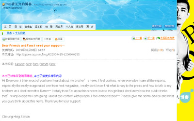 除了拖累個(gè)人事業(yè)外,他也間接連累了哥哥黃長(zhǎng)興。昨天,黃長(zhǎng)興在博客中大吐苦水,他坦言看到弟弟的新聞,覺(jué)得自己很沒(méi)有用,雖然信任弟弟深?lèi)?ài)Karen,卻不知道公眾的想法,而他近日外出時(shí)也要逃避與路人有眼神接觸,希望粉絲給予意見(jiàn),又感激大家的支持。