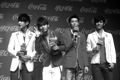 作為目前最受歡迎的青春偶像組合,“飛輪!4位帥哥成員吳尊、炎亞綸、汪東城和辰亦儒齊集上海,推出今年可口可樂全新廣告。由于早有“飛輪!背蓡T不和的傳聞,吳尊和“大哥”汪東城在發(fā)布會(huì)上更是“明爭(zhēng)暗斗”,但記者一提到前輩F4,四人均立刻不屑道,“他們只是機(jī)遇比較好”。