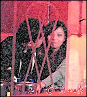 5月8日晚上9時(shí),呂方帶領(lǐng)三名男友人,往灣仔區(qū)一間只招待熟客的高級(jí)卡拉OK消遣,眾人來到VIP房,10分鐘后兩名年輕貌美,年約20歲的少女入內(nèi),呂方對(duì)一名眼睛大大下巴尖尖,笑容極甜、貌似蔡少芬的小姐特別喜歡,兩人邊唱歌邊喝酒,呂方還興奮地叫了一支2000元的威士忌跟小姐慢慢喝。酒過三巡,呂方與美女愈坐愈近,更唱情歌討好美女,又不時(shí)跟女方耳語(見右圖)。狂灌威士忌、香檳及啤酒后,跟小姐愈玩愈癲的呂方,竟突然抱起小姐又?jǐn)堄钟H,難得小姐非常樂意,任他熊抱兼吻面,呂方更蒙起雙眼,陶醉得久久不能張開。