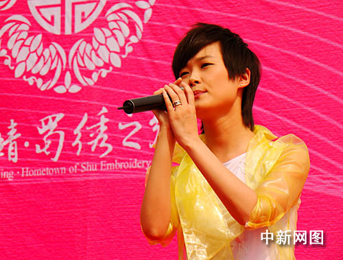 中新網(wǎng)成都6月2日電(王萌)“芙蓉城三月雨紛紛,四月繡花針;羽毛扇遙指千軍陣,錦緞裁幾寸,看鐵馬踏冰河,絲線縫韶華,紅塵千帳燈;山水一程風(fēng)雪再一程……”在唯美濃郁的《蜀繡》歌曲中,第二屆中國(guó)成都國(guó)際非物質(zhì)文化遺產(chǎn)節(jié)郫縣分會(huì)場(chǎng)掀起了陣陣高潮:李宇春來(lái)了。