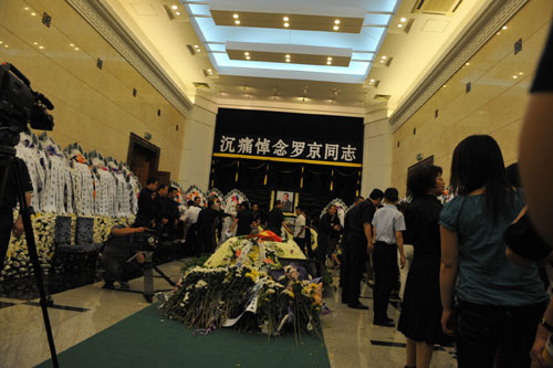 進(jìn)入悼念的人井然有序,從正門進(jìn)入,偏門出,速度迅快!霸蹅兙筒痪瞎,看一看羅老師就走!爆F(xiàn)場(chǎng)工作人員反復(fù)叮嚀。