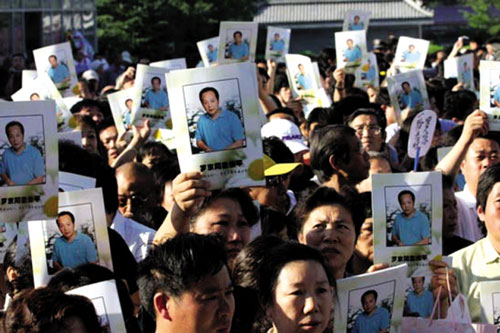 在哀樂聲中,不少群眾流下了眼淚,有的女性觀眾當場嗚咽著說:“羅京一路走好!一路走好!”聲音極度悲戚。羅京的哥哥手捧遺像送了弟弟最后一程。整個過程中,羅京的哥哥一語未發(fā),雙目無神,表情悲痛,由于過于傷悲,這位中年人竟已捧不住手中那并不十分沉重的遺像,而是由倆位親友一直在一左一右用力攙扶才能前行。