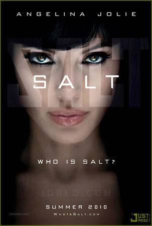 海報(bào)中的文字除了電影名稱、上映時(shí)間和朱莉名字之外,還包括影片宣傳詞“誰(shuí)是紹特(WHO IS SALT)?”使得影迷心中已生懸念。