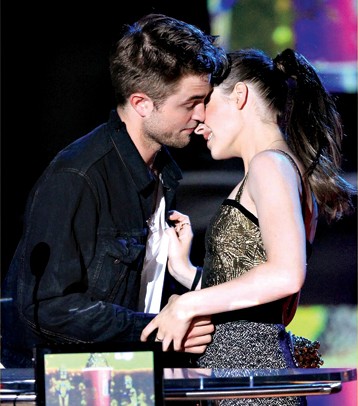 《新月》受追捧主要因為男女一號羅伯特·帕丁森與克里斯蒂·斯圖爾特的化學(xué)作用。而在戲外,兩人也是好萊塢的一對“明星情侶”。昨日,摘得“最佳接吻”獎的兩人當(dāng)場為在座觀眾獻(xiàn)上一吻,引來尖叫無數(shù)。