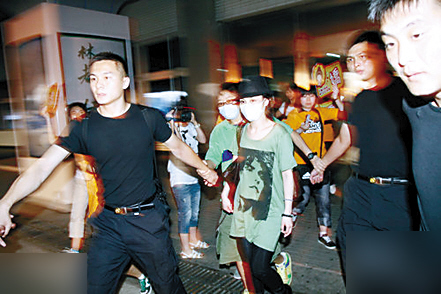 7月11日晚上7時(shí),阿嬌抵達(dá)哈爾濱參加嘉年華活動(dòng)。她出機(jī)場(chǎng)時(shí)頭戴禮帽,面戴口罩,二十多名貼身保鏢護(hù)駕。她身穿一件印有墨色男人頭像的大T恤,無獨(dú)有偶,陳冠希7月10日在香港出席陸永“棟篤笑”演出拜神儀式時(shí),也穿著同款式T恤———這對(duì)舊情人真是心有靈犀!