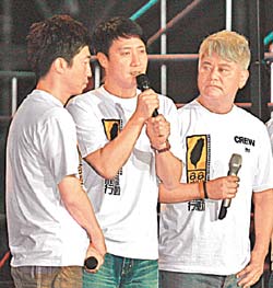 昨晚會,劉德華從頭到晚穿梭在舞臺上,先與鄭秀文合唱〈喝采〉,再與任賢齊演唱臺語歌〈天下第一等〉鼓勵臺灣,稍晚也與譚詠麟、陳百祥、溫拿五虎演唱〈朋友〉,日前他自費(fèi)來臺賑災(zāi),連趕兩臺,回港后又與曾志偉合辦“88水災(zāi)關(guān)愛行動”,為臺灣出錢出力。