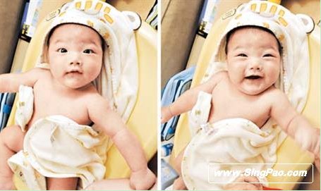 中新網(wǎng)10月21日電 陳慧琳(Kelly)與老公劉建浩的愛情結(jié)晶劉昇(蝦餃仔),轉(zhuǎn)眼已出世過百日,已三個(gè)多月大的他,體重暴升至16. 5 磅,兩邊面頰肥嘟嘟,非?蓯邸=誎elly將蝦餃仔全新相上載到個(gè)人博客上,與大家見證兒子的成長(zhǎng)。除有兒子的大頭相外,還有他的出浴照、及兩母子親密合照,相中洋溢出一片溫馨!