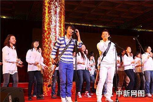 中新網(wǎng)11月18日電 11月13日至19日,美國總統(tǒng)奧巴馬對亞洲進(jìn)行國事訪問,期間于15日至18日訪問中國上海和北京。為了歡迎奧巴馬總統(tǒng)首次訪華,昨晚(17日)在人民大會堂特別舉行了一場慶;顒印Og中國文藝界的諸位大師們紛紛登臺獻(xiàn)藝,而羽泉作為中國流行樂壇的唯一代表出席了此次活動,并壓軸獻(xiàn)唱歌曲,讓兩國領(lǐng)導(dǎo)人及各路中外記者領(lǐng)略到中國流行音樂的獨(dú)特魅力。事后,奧巴馬走到羽凡身邊非常親切的說:“good show!(出色的表演)”,而對海泉則說:“I like your voice(我喜歡你的聲音)”。