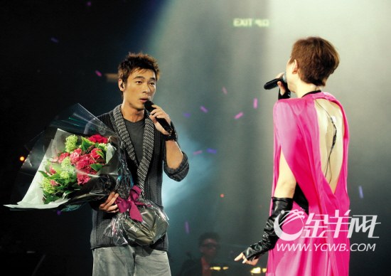 當(dāng)晚,鄭秀文先是在臺(tái)上表示:“今晚請(qǐng)了一個(gè)很特別的人來(lái)做我嘉賓,讓我先喝口水,因?yàn)檫@首歌已經(jīng)N年沒唱過(guò)了!”之后便響起她與許志安的經(jīng)典合唱歌《其實(shí)你心里有沒有我》前奏,全場(chǎng)觀眾立即瘋狂尖叫。此時(shí)許志安拿著一束桃紅色玫瑰花上臺(tái),場(chǎng)面浪漫感人。當(dāng)唱到最后一句“其實(shí)你心里有沒有我”時(shí),鄭秀文有點(diǎn)害羞地避開許志安的眼神。