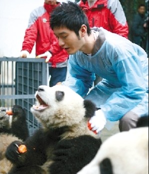 昨日,由臥龍中國保護(hù)大熊貓研究中心精心遴選的10只大熊貓,從該中心雅安碧峰峽基地啟程前往助陣上海世博。作為“中國保護(hù)大熊貓研究中心熊貓愛心大使”的黃曉明,同時(shí)又是成都和雅安的熊貓愛心大使,以及上海世博會志愿者宣傳大使,特意向劇組告假趕到雅安現(xiàn)場。此行他不僅是為了宣傳保護(hù)大熊貓和世博,最重要的是為了來替自己的一雙“兒女”送行。原來由他出資百萬元認(rèn)養(yǎng)的地震后出生的全球首對雙胞胎大熊貓“平平”、“安安”這次就將以“哥哥”、“姐姐”的身份帶領(lǐng)另外8只熊貓遠(yuǎn)赴上海世博。(春城晚報(bào))